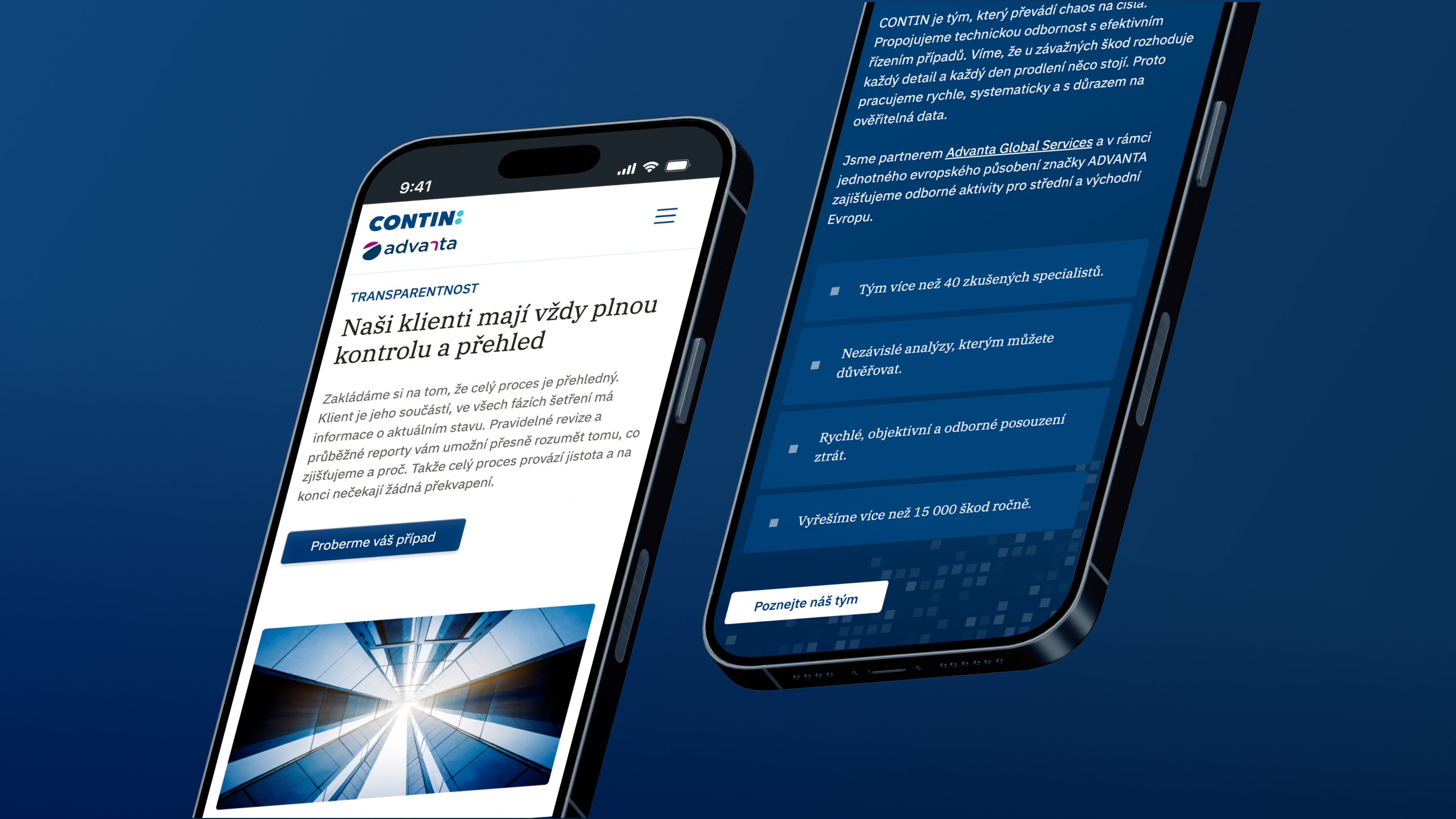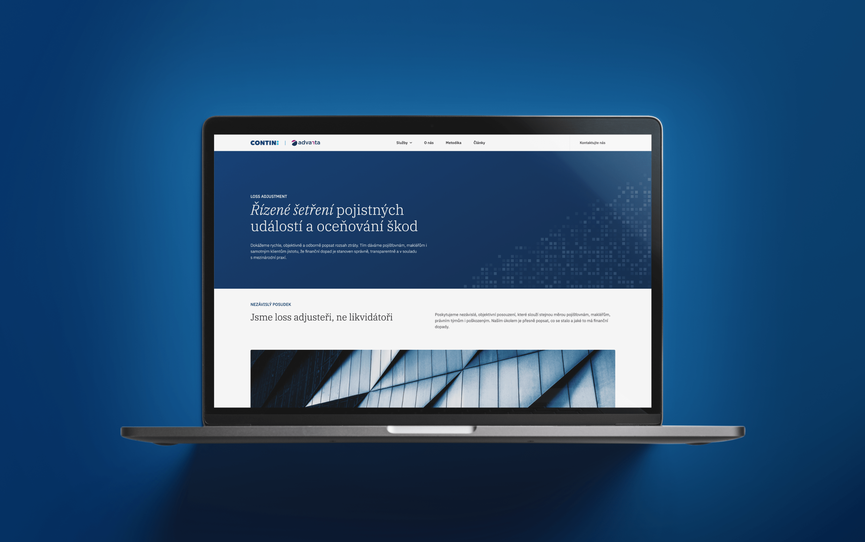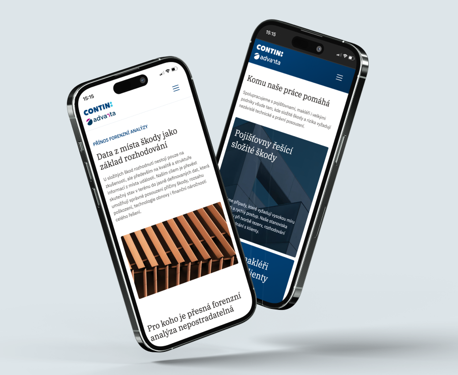 Contin patří k absolutní špičce v oblasti nezávislého šetření škod a analýzy pojistných rizik. Jsou to inovátoři, kteří své odvětví aktivně posouvají vpřed. Jenže zatímco v terénu běžně používají nejmodernější 3D skenery nebo termokamery, jejich web v čase spíše zamrzl. Naším úkolem bylo tuto propast překlenout a vytvořit prezentaci, která bude stejně profesionální, věcná a pokroková jako firma samotná.